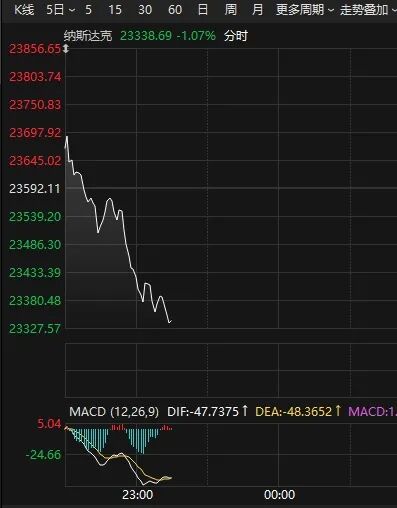 2月3日晚间,美股三大指数开盘涨跌不一,开盘不久后集体跳水,纳指跌逾1%。