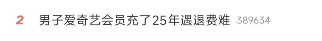 12月28日,话题“男子爱奇艺会员充了25年遇退费难”登上微博热搜。