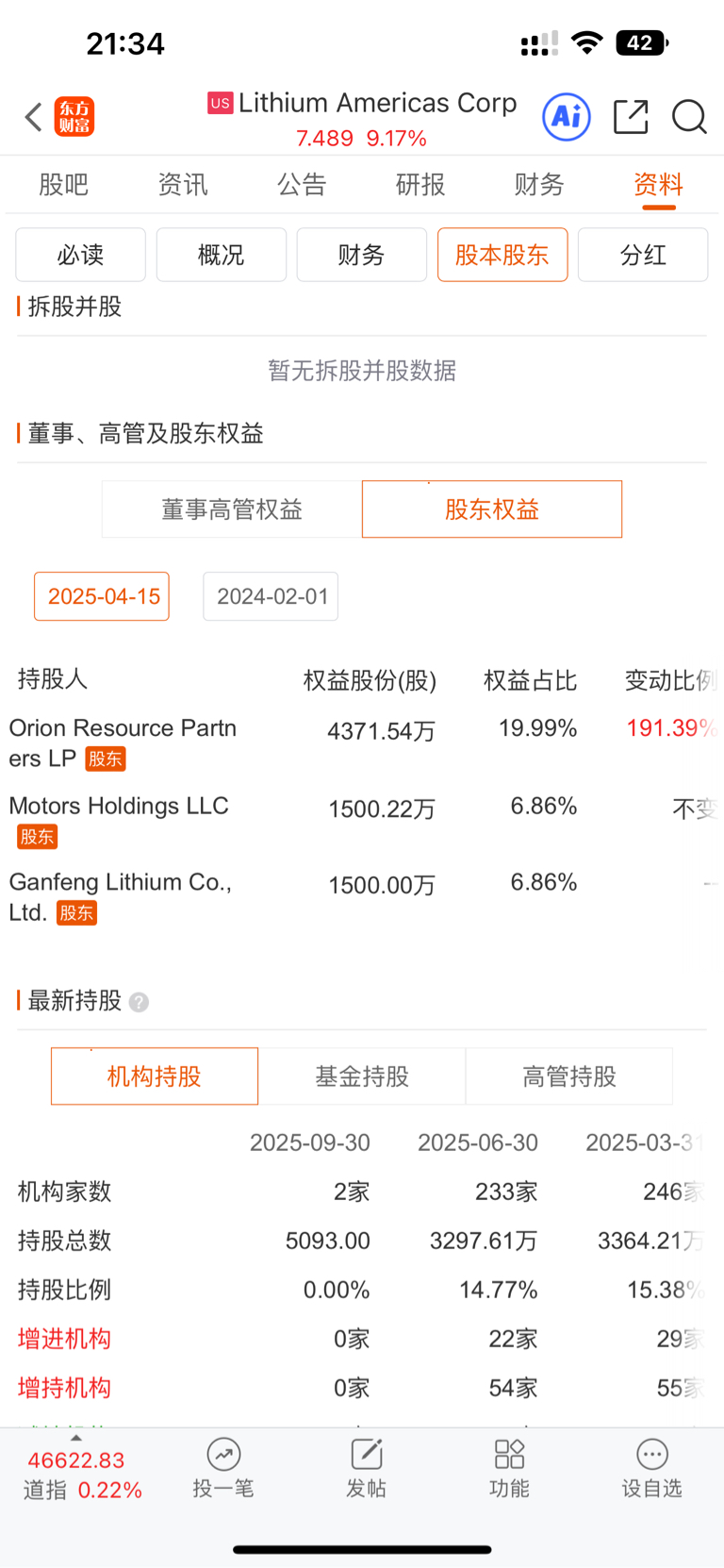 $Lithium Americas Corp(NYSE|LAC)$ 赣锋锂业持股1500万股