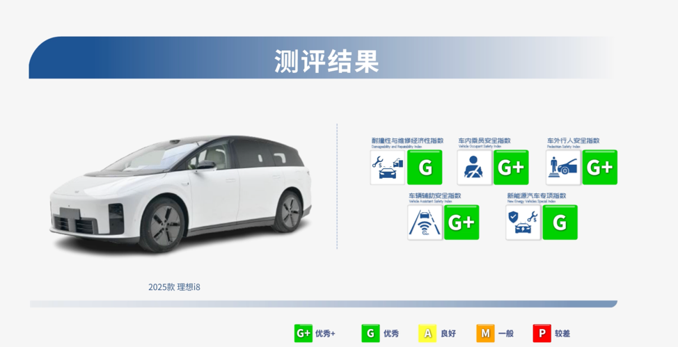 近日,中国保险汽车安全指数(C-IASI)测评结果公布,理想汽车旗下家庭纯电六座SUV理想i8荣获全优安全评级。在2026年实施的新增新能源专项测试的严苛规程下,这款车型不仅实现车内乘员安全、车外行人安全等核心维度G+(优秀+)评级,更在电池安全、碰撞防护等专项测试中斩获满分,成为新规实施后首批全优车型。这份成绩单的背后,是中国汽车产业在材料研发、结构设计、智能安全等领域的系统性突破。