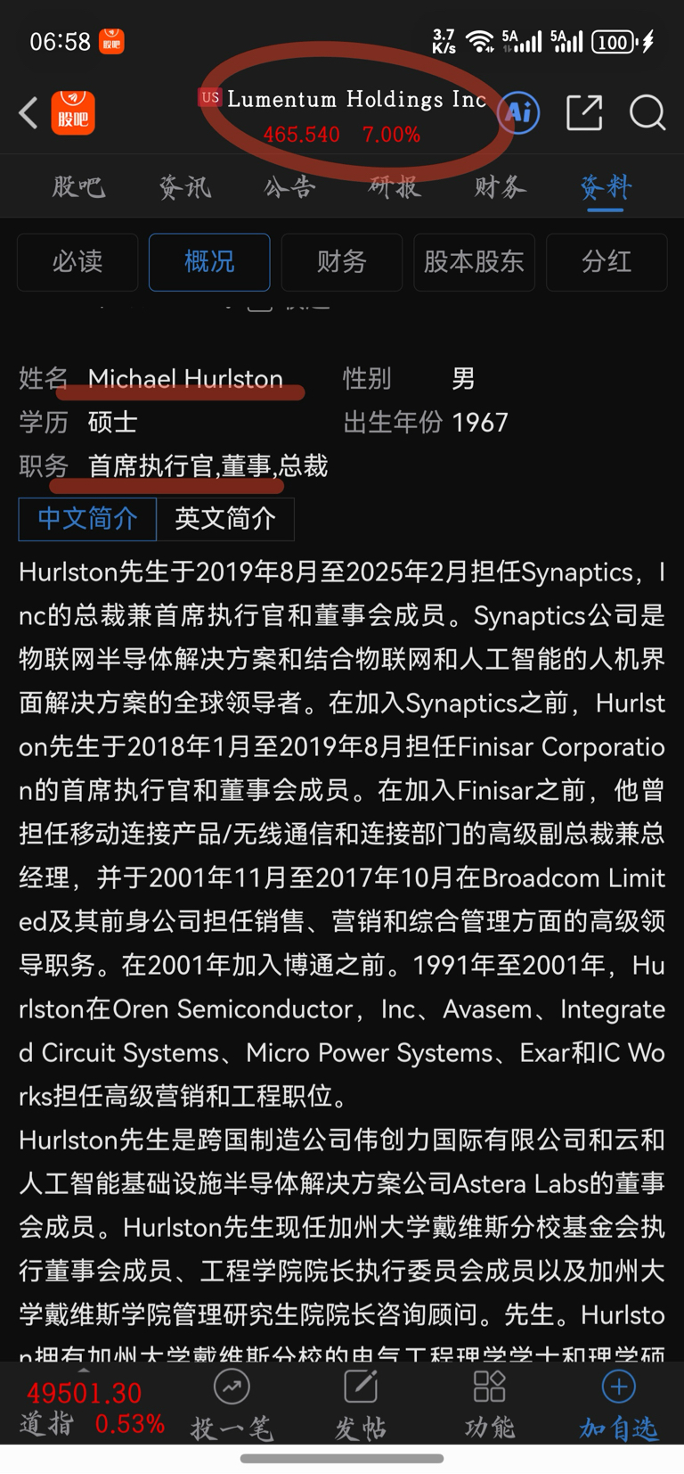 $Lumentum Holdings Inc(NASDAQ|LITE)$ L公司的CEO M先生,这不就是Lumentum的CEO Michael hurlston先生吗?意欲如何?$英唐智控(SZ300131)$