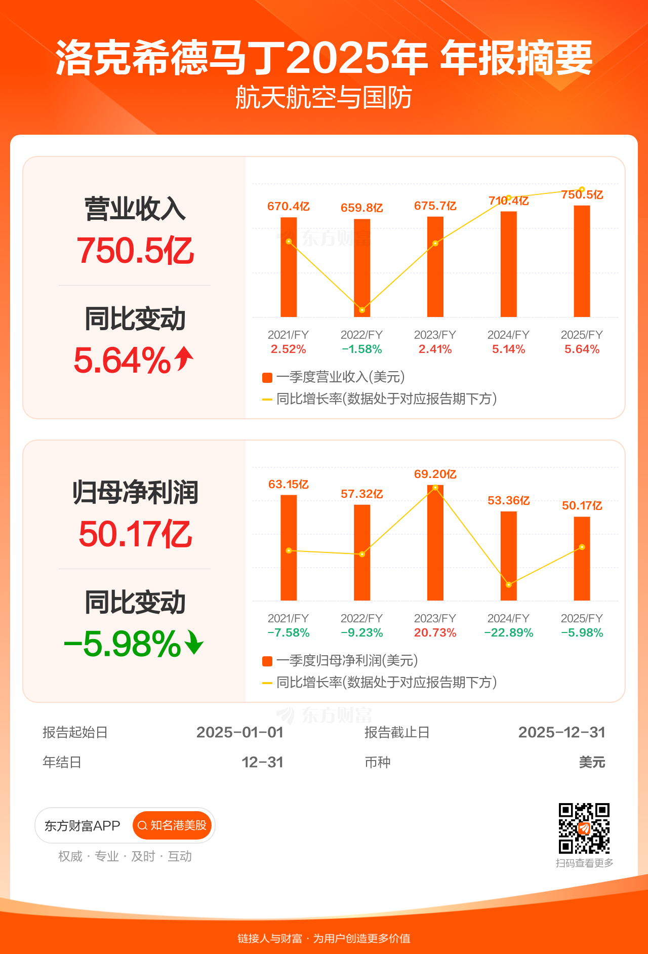 图解财报:洛克希德马丁年报盈利50.17亿美元,同比减少5.98%