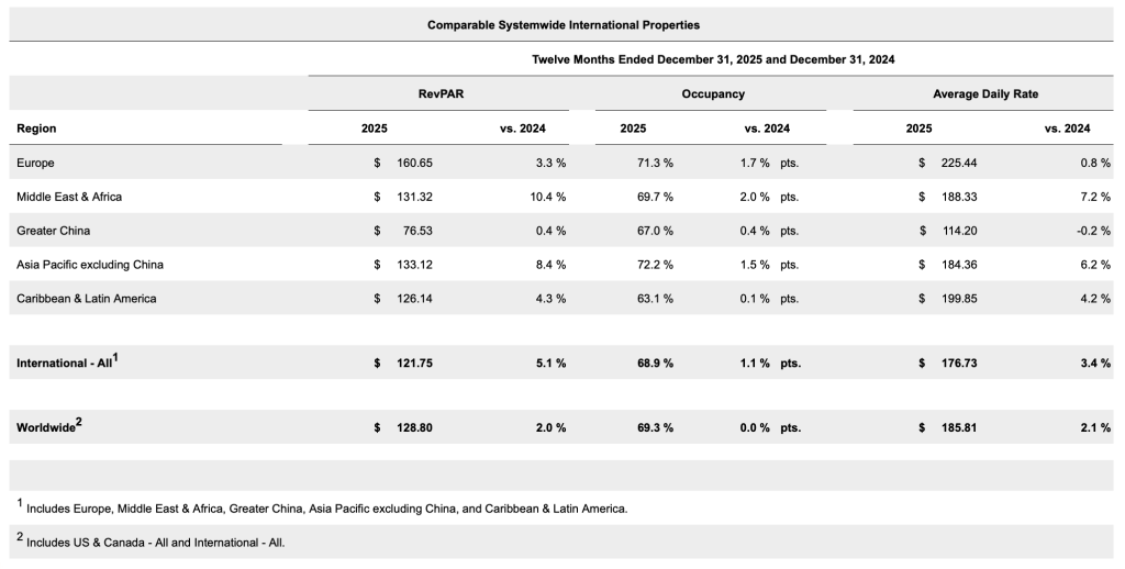 2月11日,万豪国际酒店集团(Marriott International, Inc.,Nasdaq: MAR,下称“万豪”)披露2025年第四季度和全年的业绩报告。