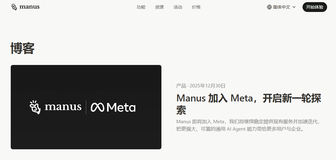 Meta宣布收购AI智能体公司Manus 为Meta成立以来第三大收购