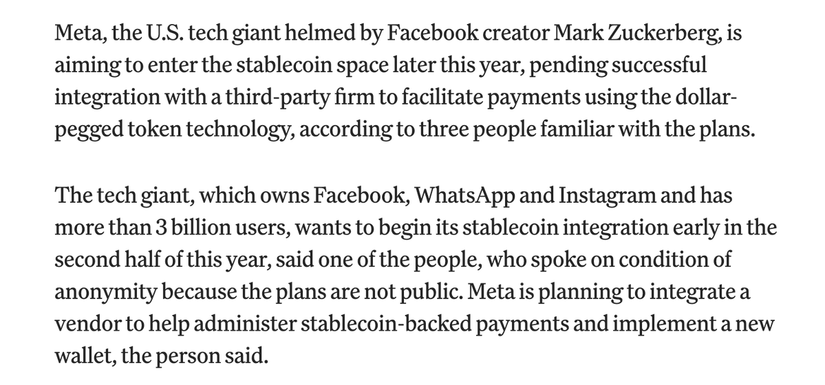 Meta据悉计划今年晚些时候进军稳定币领域