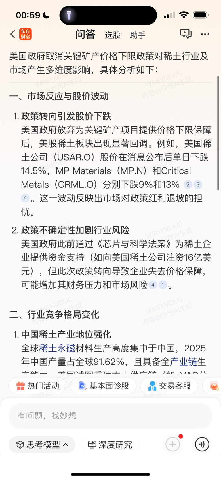 $MP Materials Corp-A(NYSE|MP)$ 今天稀土东升西落原因是什么? 就是盘中公布的美国取消稀土矿保价条款,基本上就是放弃和中国争夺稀土产业资格了。消息后中国稀土etf大涨3.5%,美国稀土暴跌!