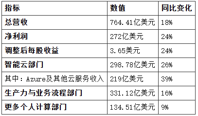 微软25财年Q4业绩表现强劲,营收达764.41亿美元,同比增长18%;净利润为272亿美元,同比大幅增长24%。调整后每股收益3.65美元,同样超出市场预期。受此影响,在财报发布会后,公司盘后股价大涨近8%。
