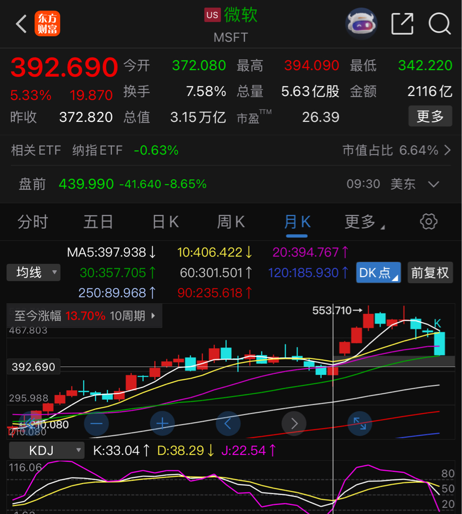 $微软(NASDAQ|MSFT)$ 美股也不喜欢有缺口
