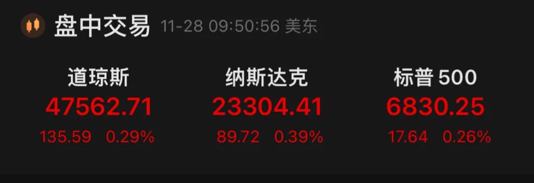 美股开盘,三大股指集体上涨,截至发稿,道指涨0.29%,纳指涨0.39%,标普500指数涨0.26%。