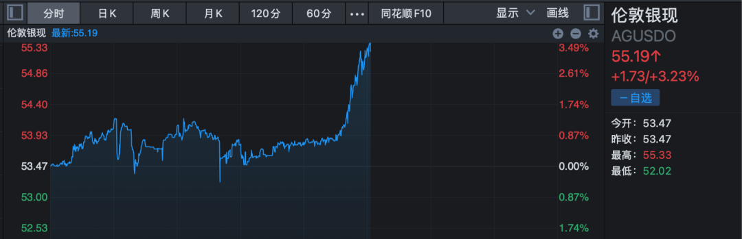 现货黄金持续拉升,一度站上4200美元/盎司,日内涨超1%。现货白银日内涨幅扩大至3.23%,报55.19美元/盎司,再创历史新高。