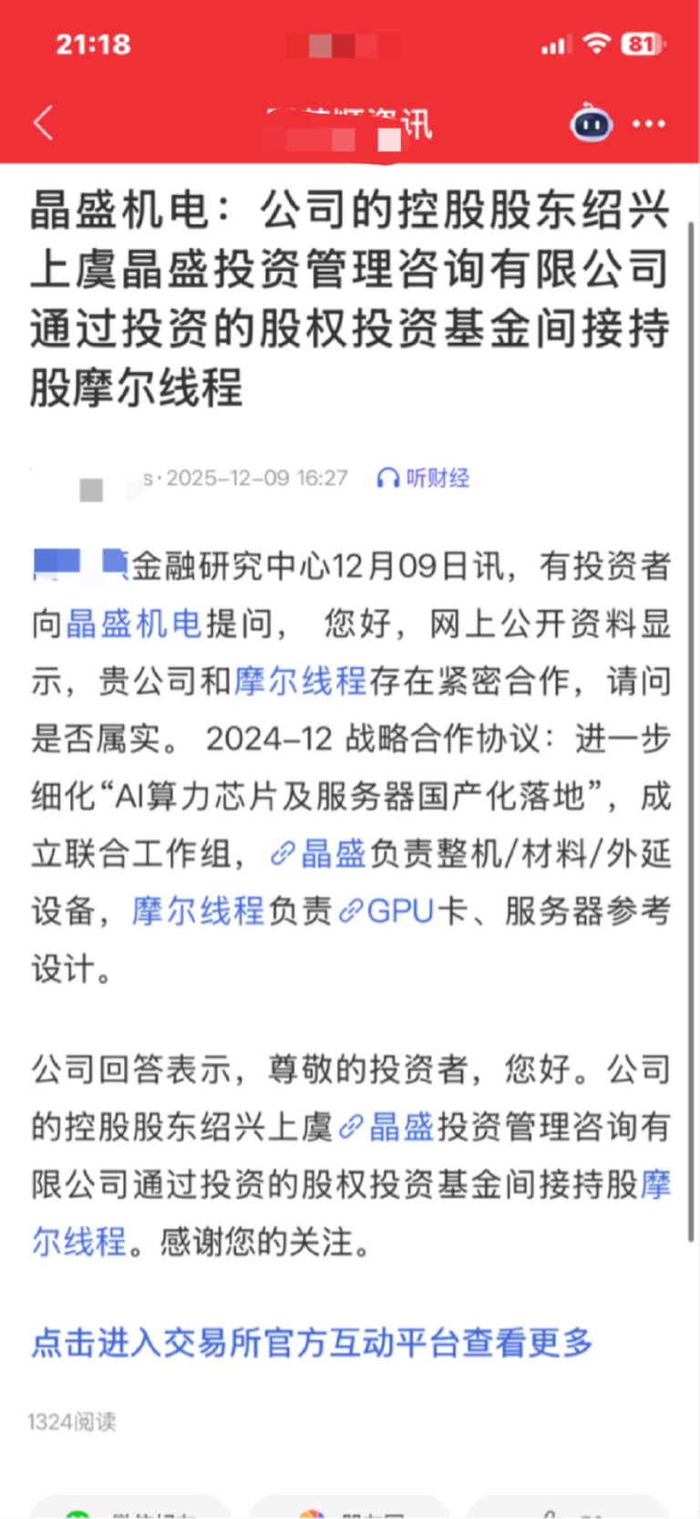 明天要起飞了CPU、GPU国内龙头摩尔线程-参股公司晶盛机电