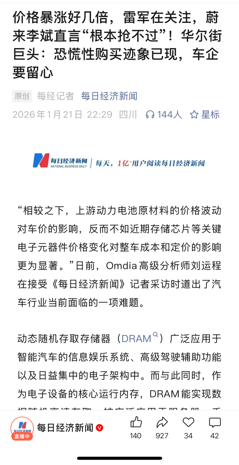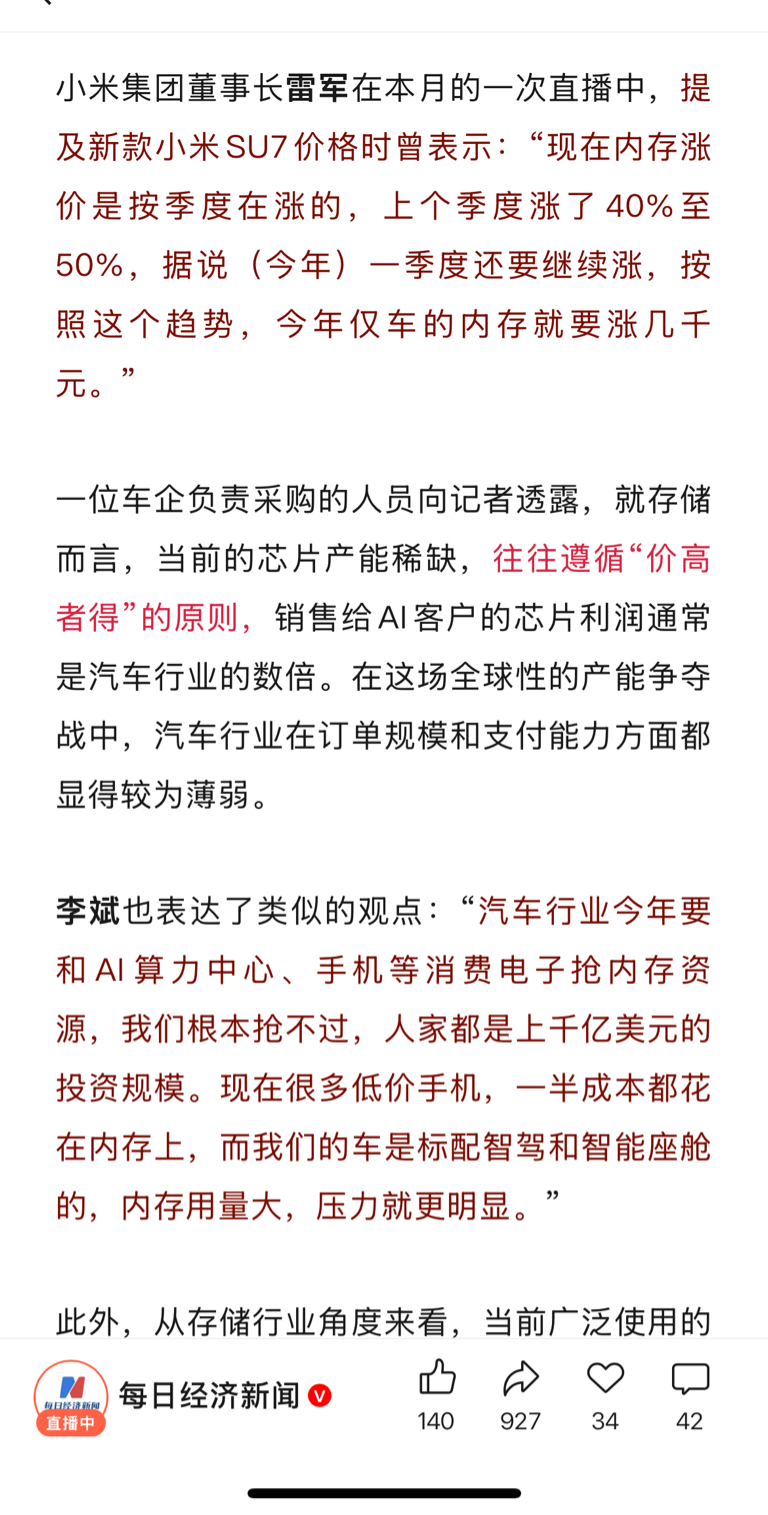 最大供需矛盾是车规级存储