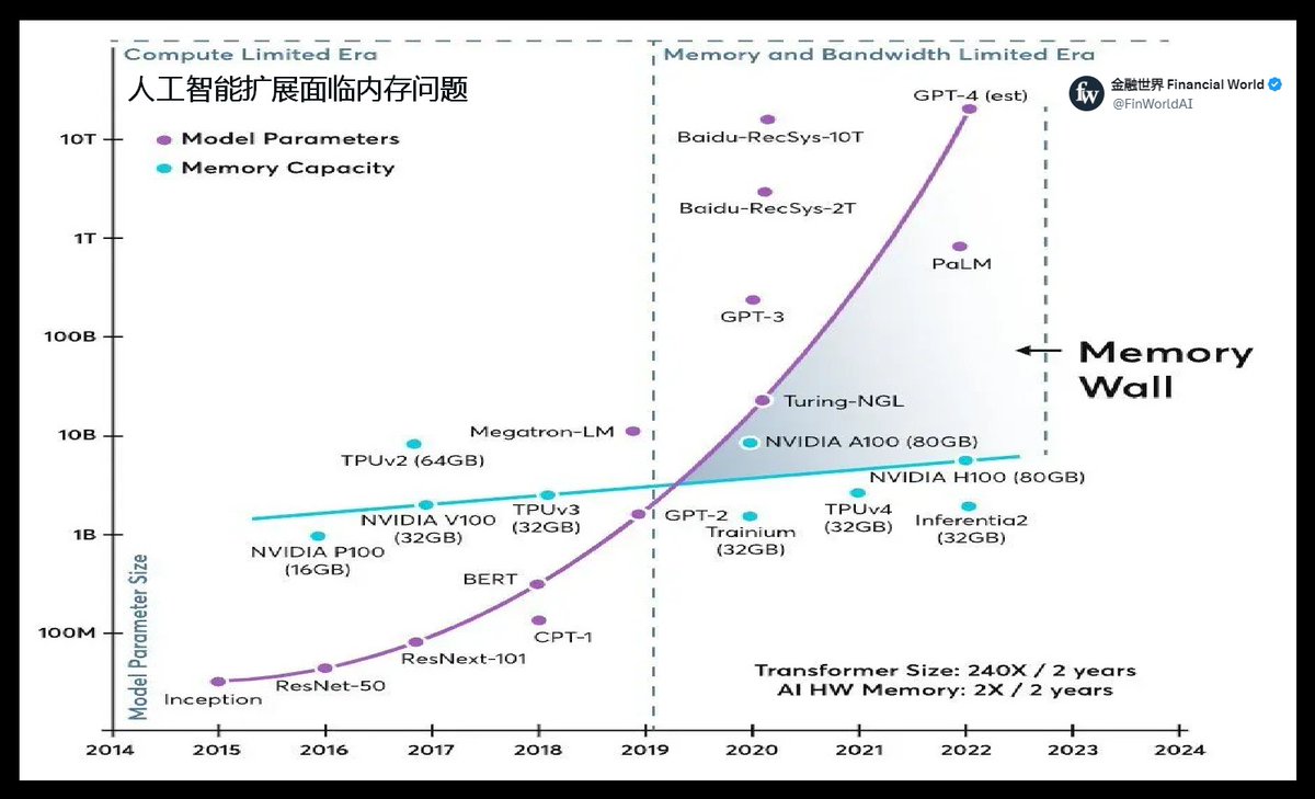 2022年至2024年间,投资者专注于NVDA因为计算能力显然是瓶颈所在。但自2019年左右以来,真正的瓶颈一直是内存,只是当时的模型规模不够大,无法体现这一点。现在模型规模足够大了,迫使GOOG、AMZN、META和MSFT,在每个加速器周围部署更多的HBM和闪存,以确保其正常运行。金融世界(Financial World)认为,这正是MU和SNDK发挥作用的地方。