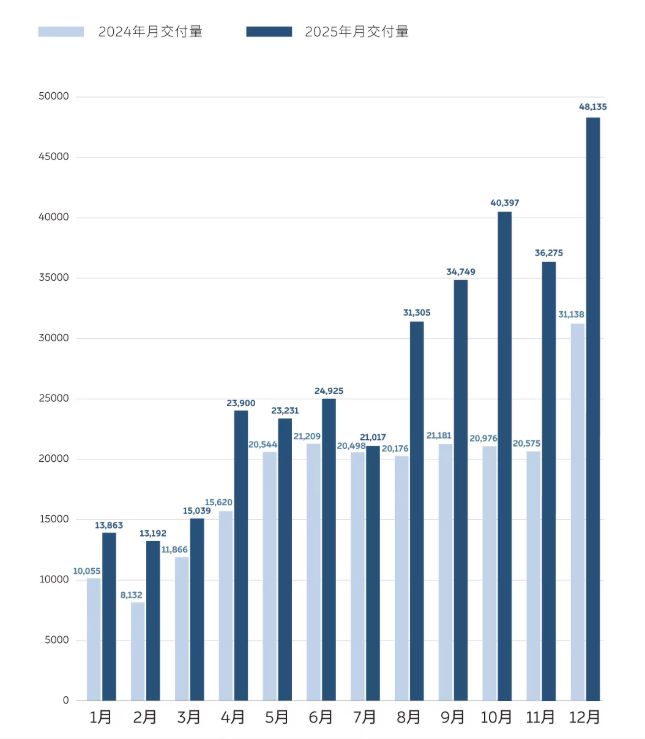 官方数据显示,2025年,蔚来累计交付约32.6万辆新车。其中,2025年第四季度交付量约12.48万辆,创历史新高,同比增长71.7%,对公司全年交付量贡献度超38%。