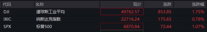 当地时间2月6日,美股三大指数集体高开,随后,道指持续走高,截至发稿,道指涨1.75%,标普500指数涨1.07%,纳指涨0.78%。