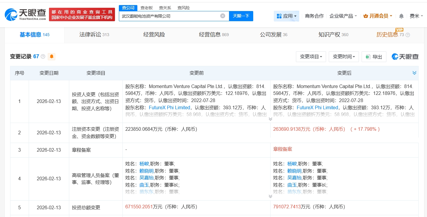 蔚能电池增资至26.4亿元