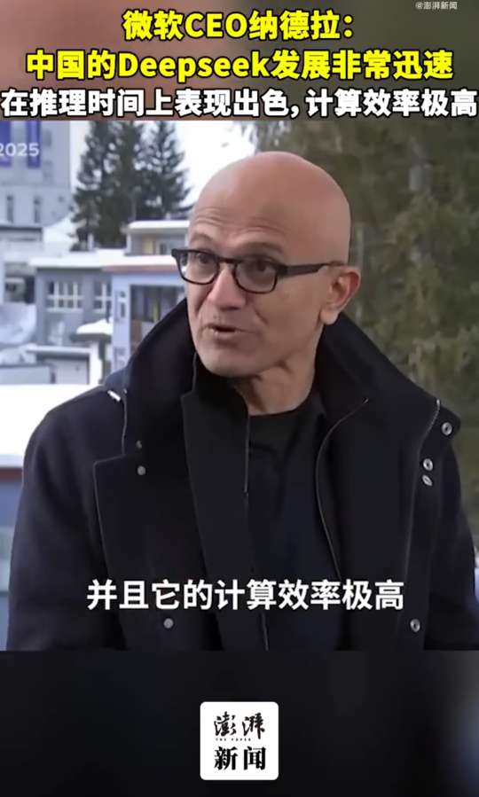 微软CEO谈及DeepSeek,"它的计算效率极高!"
