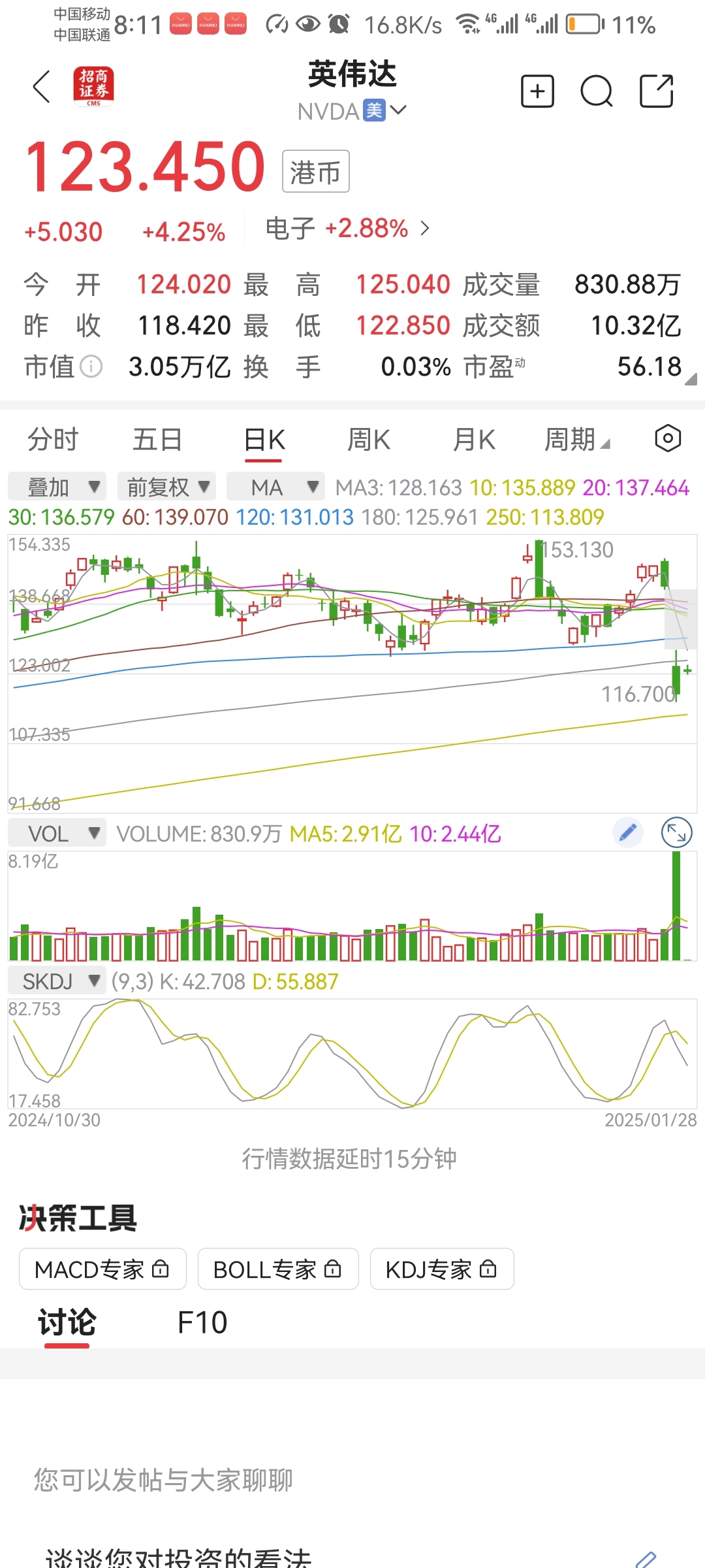 $英伟达(NASDAQ|NVDA)$ 盘前高开四个点