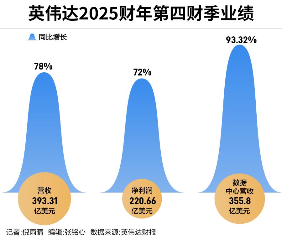财报显示,英伟达第四财季总营收达到393.31亿美元,同比增长78%;净利润为220.66亿美元,同比增长72%。