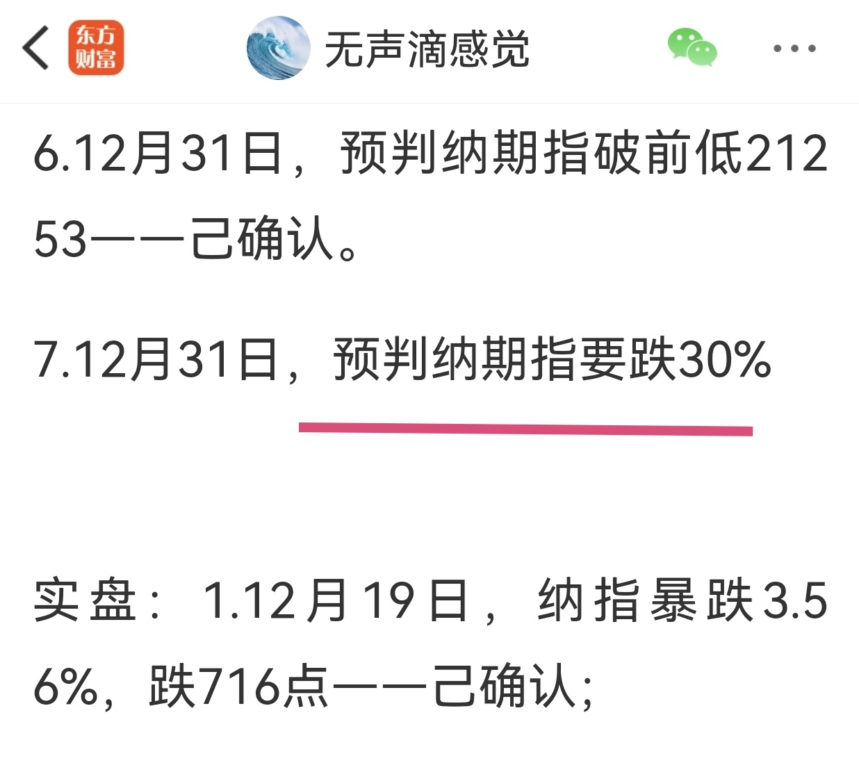 今天,纳斯达克指数从最高点20204.58到新低15575.68,跌幅为29.71%,己进入技术性熊市,己验证了三个月前的预测——美股的下跌幅度。