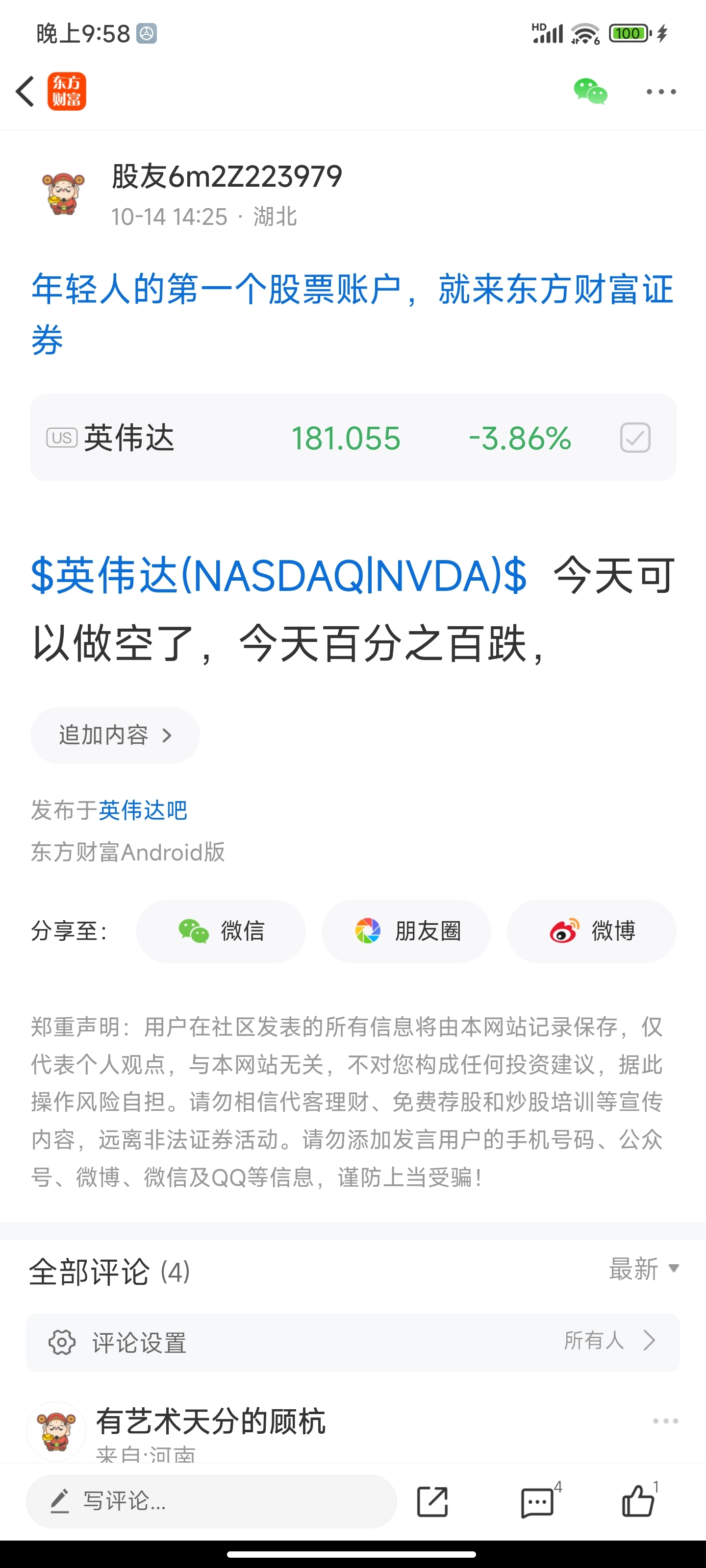 温馨提示: 1.根据《证券法》规定,禁止编造、传播虚假信息或者误导性信息,扰乱证券市场;2.用户在本社区发表的所有资料、言论等仅代表个人观点,与本网站立场无关,不对您构成任何投资建议。用户应基于自己的独立判断,自行决定证券投资并承担相应风险。《东方财富社区管理规定》