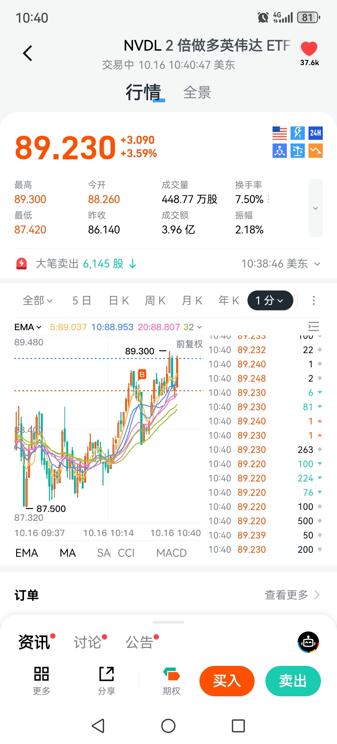 $英伟达(NASDAQ|NVDA)$ 记录一下,炒美股第二天,两倍做多英伟达