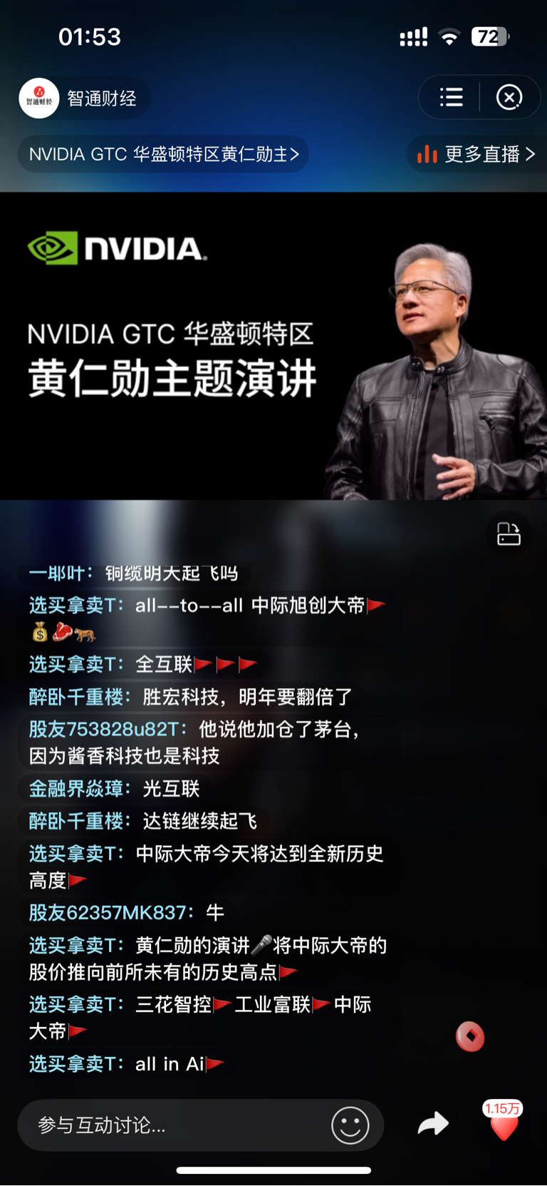 黄仁勋演讲将英伟达和中际大帝股价推向前所未有的历史新高!见证历史一刻!