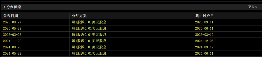 1)每季度每股分红0.01每元,每年0.04美元的分红收益
