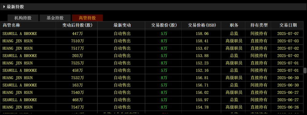 3)黄仁勋自6月26日每天雷打不动出售8万股英伟达,已经逐渐在高位将公司交付给各位,自己不增持却一直在减持还高喊看好自己公司发展?
