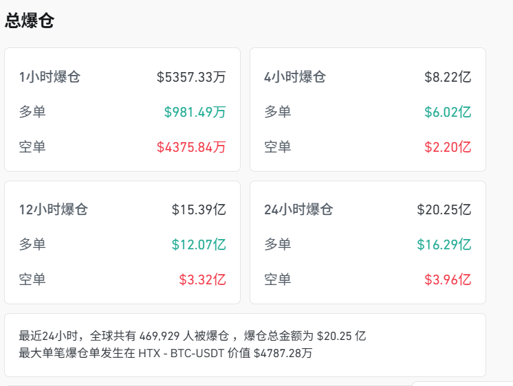 数据显示24小时,共有超46万人爆仓,20.25亿美元(约合人民币144.37亿元)蒸发。