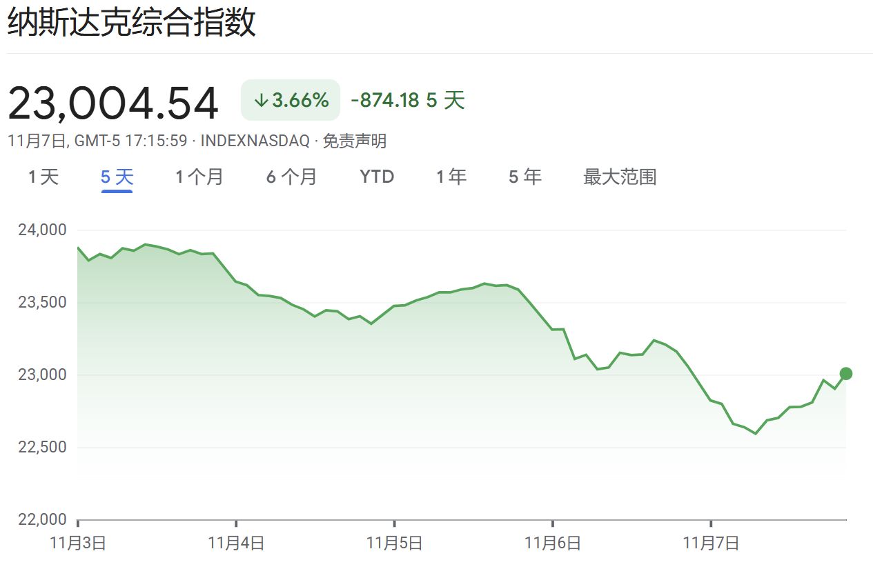 11月7日(周五),美股上演“惊魂一夜”,三大指数开盘1个小时后一路下跌,标普指数一度跌超1.2%,纳指跌超2%,随后三大指数上演“V型反转”。截至当天收盘,标普、道指分别上涨0.13%和0.16%,纳指收跌0.21%。
