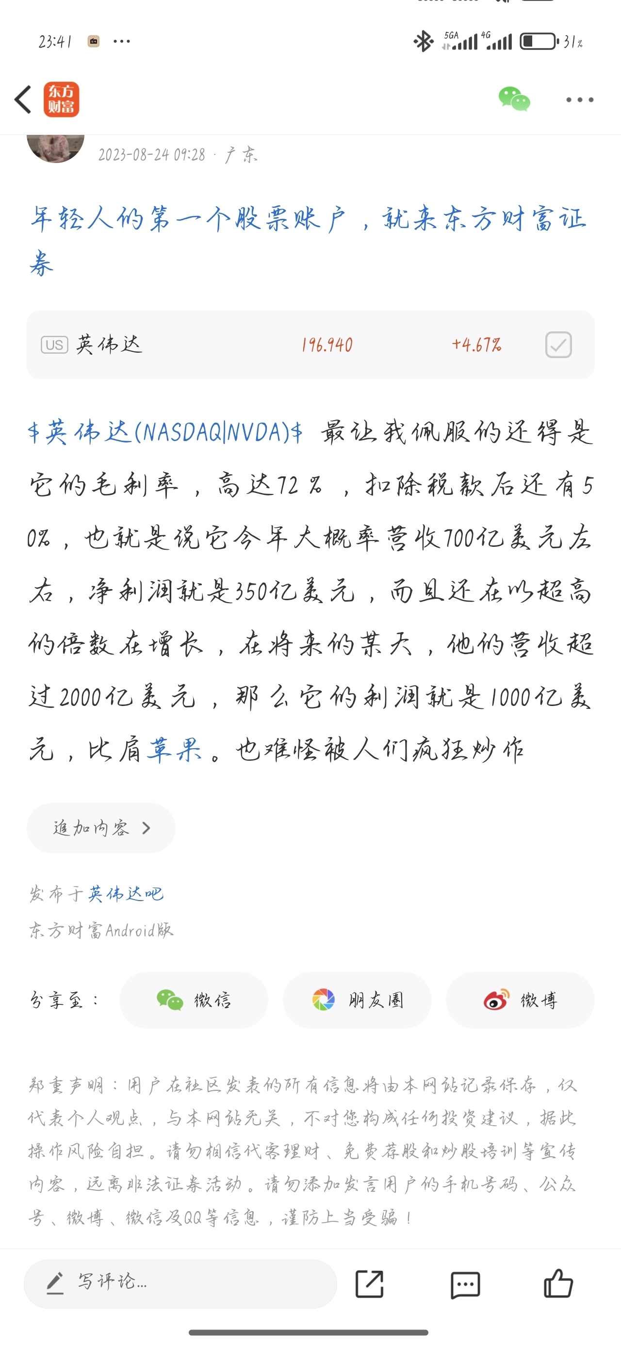 $英伟达(NASDAQ|NVDA)$ 两年前发的帖,23年的营收才勉强过700亿美金,估计未来几个季度,一个季度营收就有700亿美金,难怪华尔街不停的上调它的目标价。