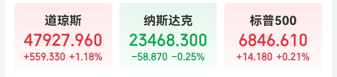 当地时间11月11日,美股三大指数收盘涨跌不一,道琼斯指数涨1.18%,标普500指数涨0.21%,纳斯达克综合指数跌0.25%。