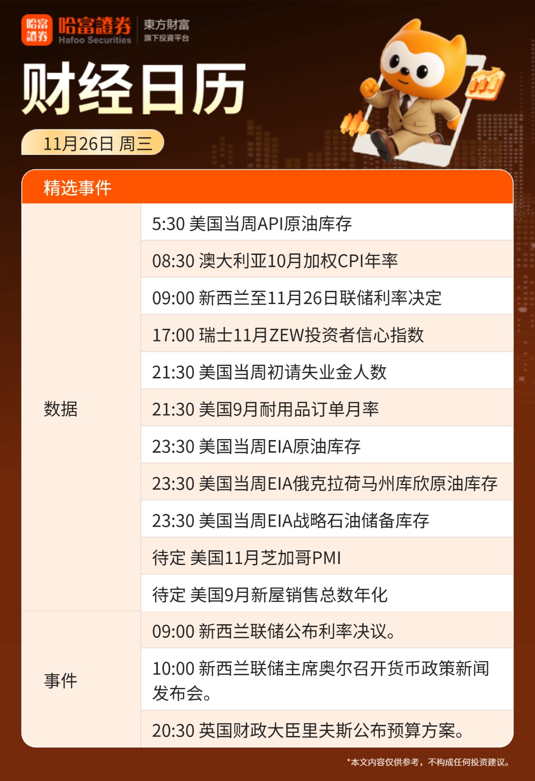 商品市场:国际油价11月25日下跌。截至当天收盘,纽约商品交易所WTI原油期货当月连续合约下跌0.73美元,收于每桶58.11美元,跌幅为1.24%。COMEX黄金期货当月连续合约上涨32.10美元,涨幅0.78%,报4126.3美元/盎司。
