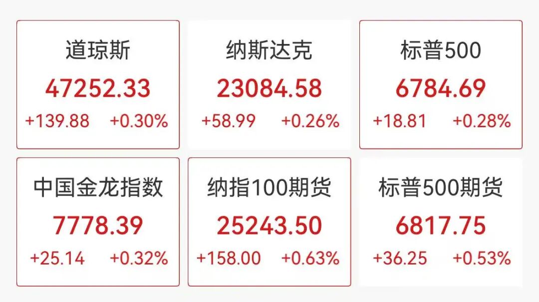11月26日,美股开盘上涨,截至北京时间23时,道琼斯指数涨0.30%,标普500指数涨0.28%,纳斯达克综合指数涨0.26%。