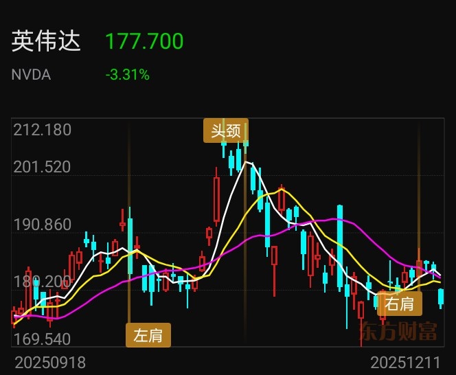 $英伟达(NASDAQ|NVDA)$ 标准头肩顶形态,中长期看跌