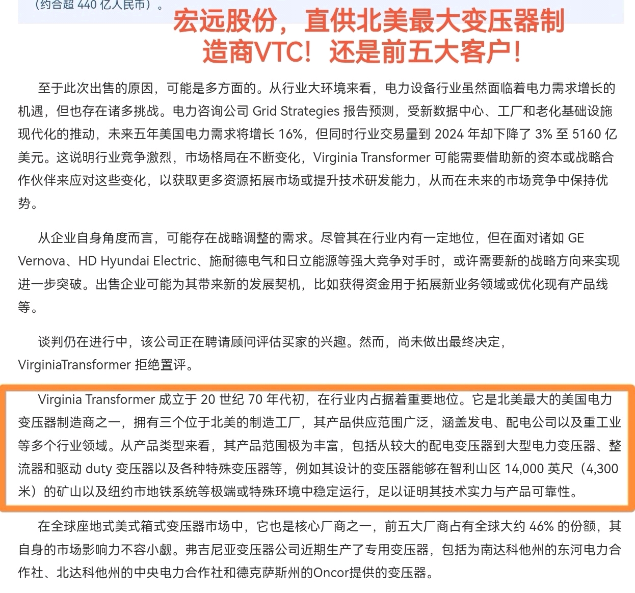 $英伟达(NASDAQ|NVDA)$ 宏远股份变压器细分龙头企业!公司供货美国变压器巨头 美国VTC,乘风北美缺电风口。