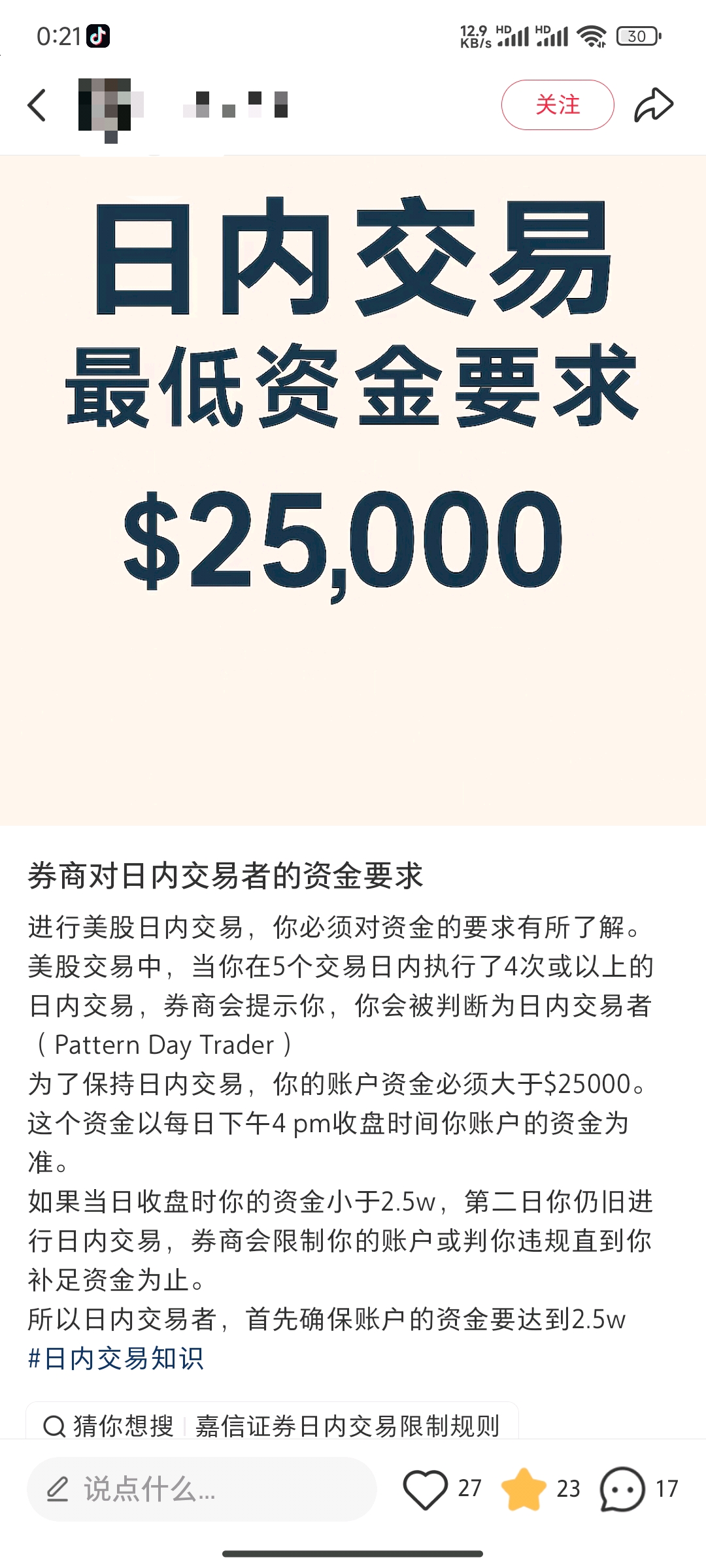 各位大佬,我有一个问题想咨询你们,我刚刷到美股,有一条2万五千美金以下连续5交易