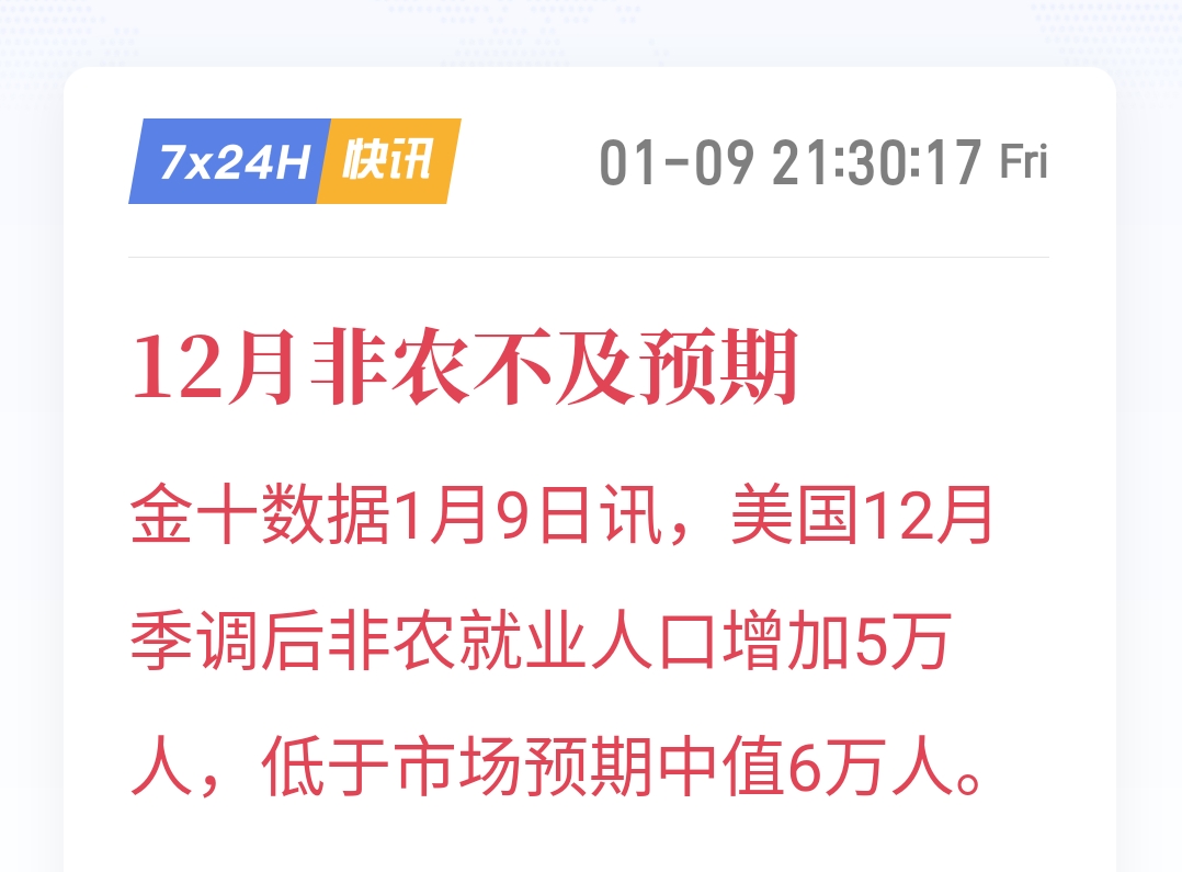 12月非农不及预期