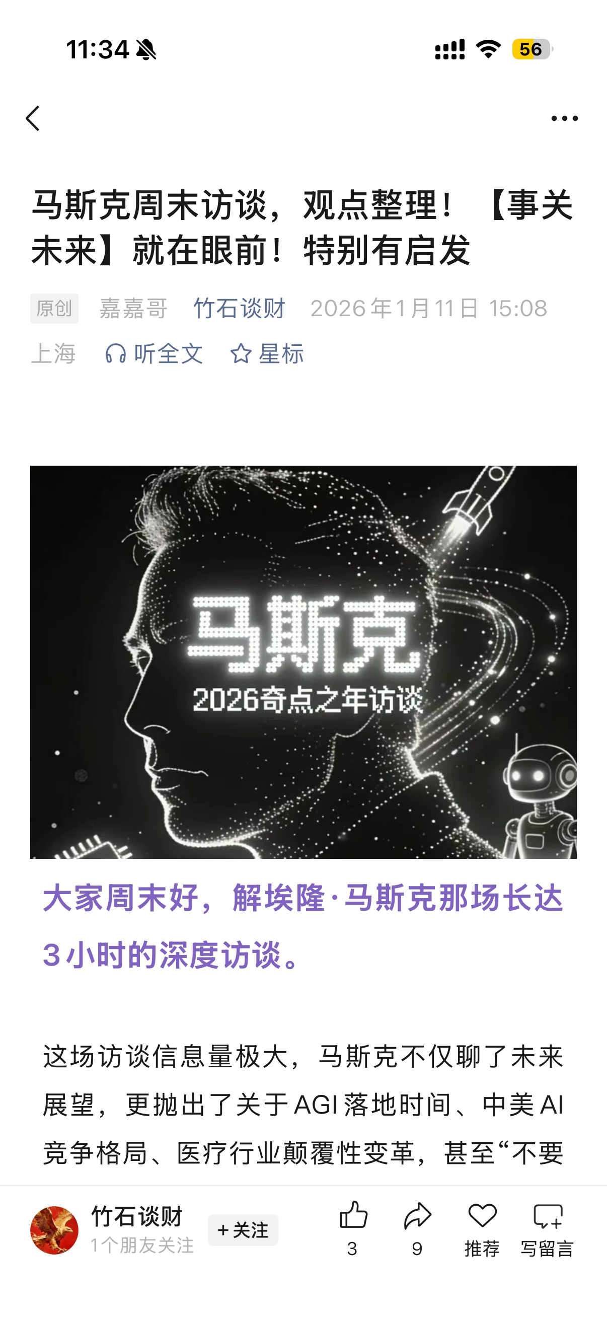 马斯克周末访谈,观点整理!写的真不错
