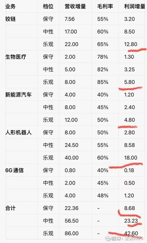 核心假设(乐观口径)