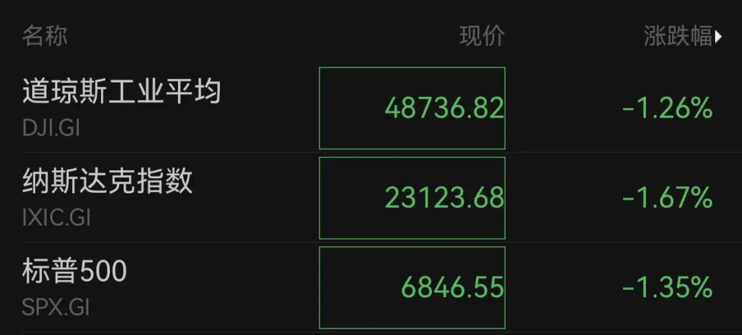 当地时间1月20日,美股三大股指集体低开,截至发稿,道指跌1.26%,纳指跌1.67%,标普500指数跌1.35%。