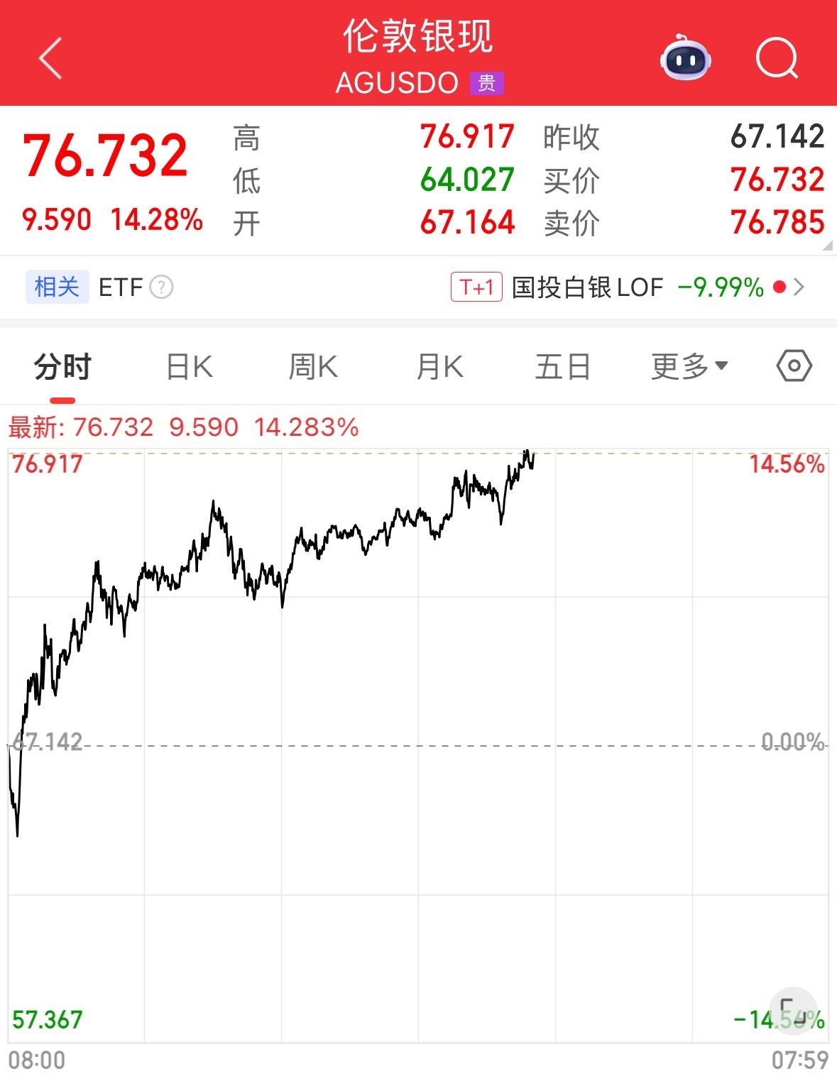 黄金、白银大涨,现货黄金涨超5%,现货白银涨超14%。