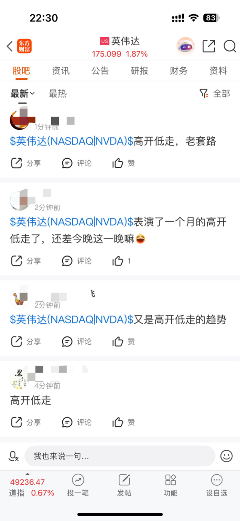 温馨提示: 1.根据《证券法》规定,禁止编造、传播虚假信息或者误导性信息,扰乱证券市场;2.用户在本社区发表的所有资料、言论等仅代表个人观点,与本网站立场无关,不对您构成任何投资建议。用户应基于自己的独立判断,自行决定证券投资并承担相应风险。《东方财富社区管理规定》