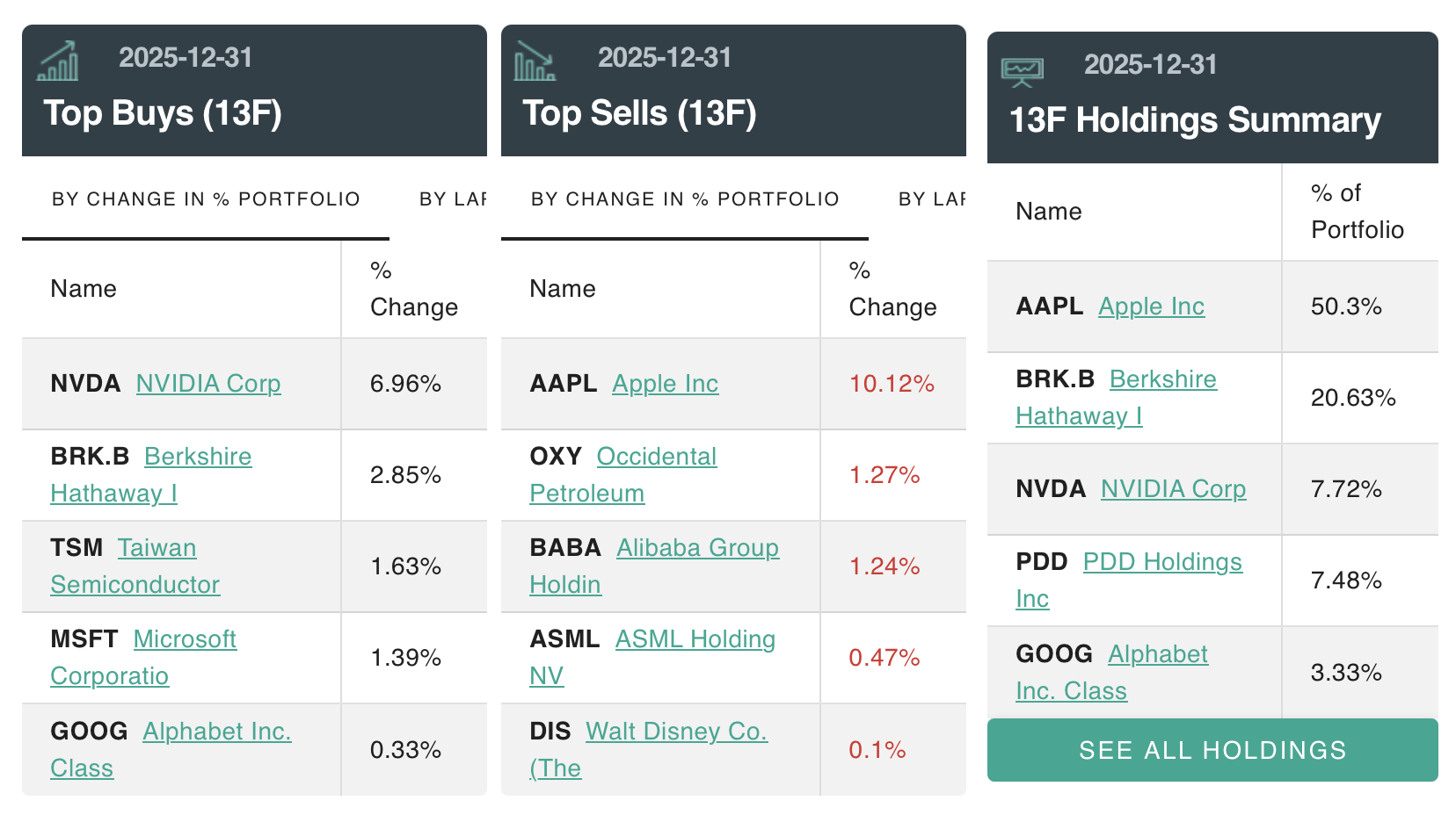 段永平管理的H&H International Investment近日披露持仓显示,截至2025年底,段永平大幅加仓英伟达,还加仓了拼多多、伯克希尔·哈撒韦等,小仓位新进三家AI相关公司。与此同时,段永平减持了苹果、阿里巴巴、西方石油等。