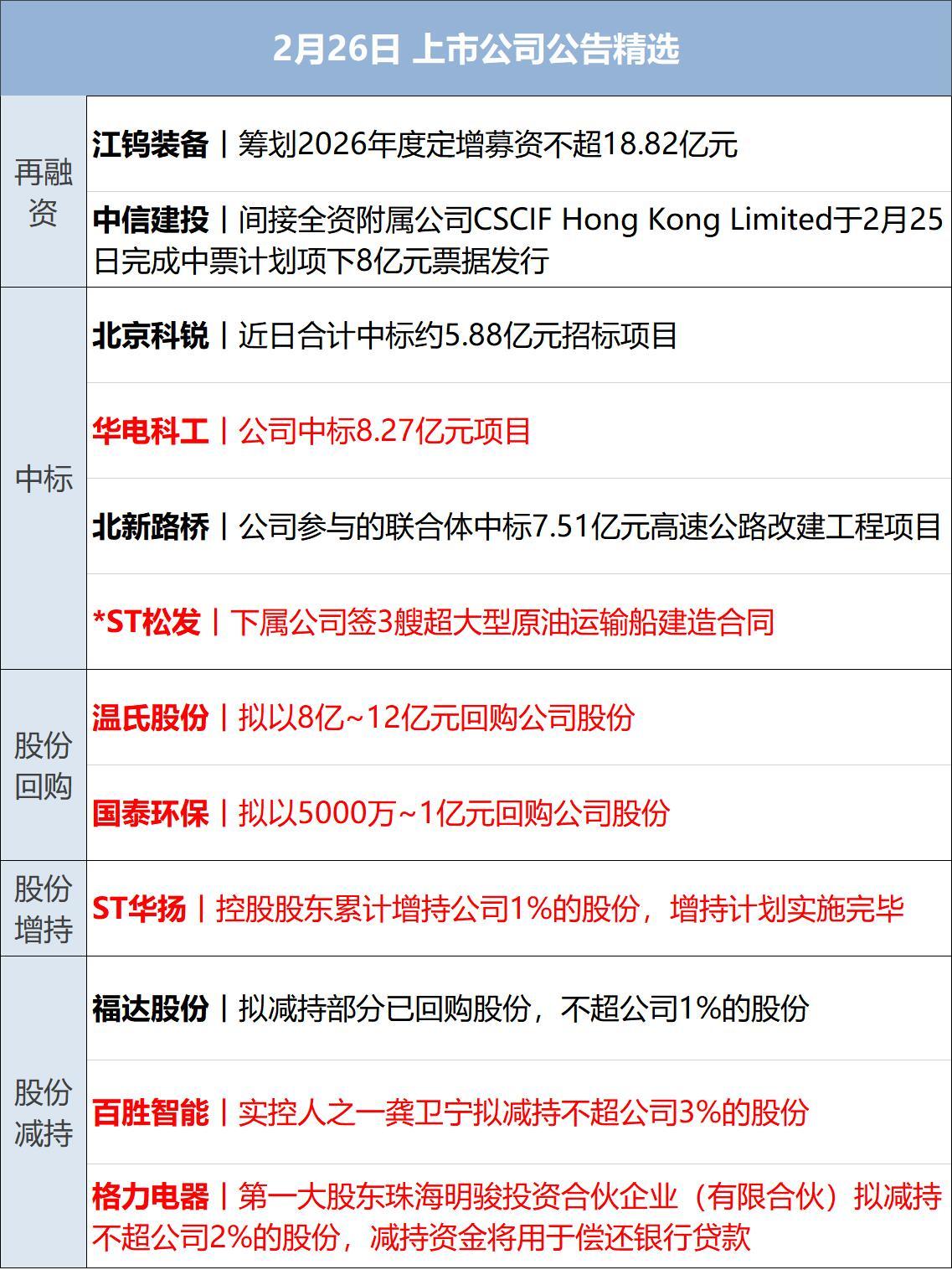 贵州茅台(SH600519,股价1491.66元,市值1.87万亿元):近期有消息称,茅台宣布调整53度飞天茅台出厂价,从1169元/瓶上调至1299元/瓶,单瓶上涨130元,涨幅约11.1%。2026年2月24日起开始执行。对此,茅台相关负责人25日向记者表示,上述传闻为不实信息,“一切信息以官方发布为准”。