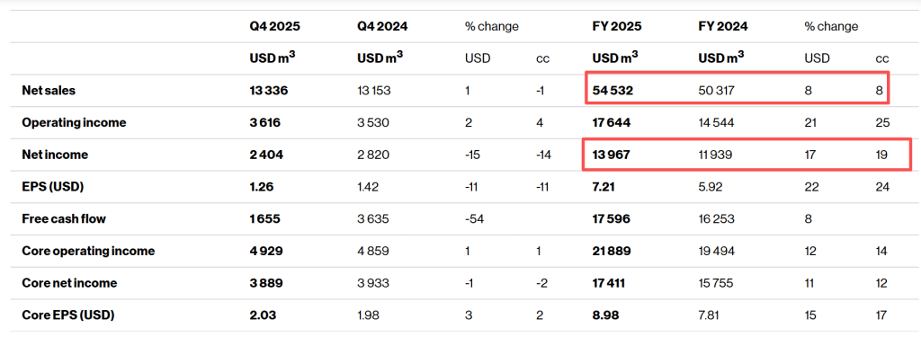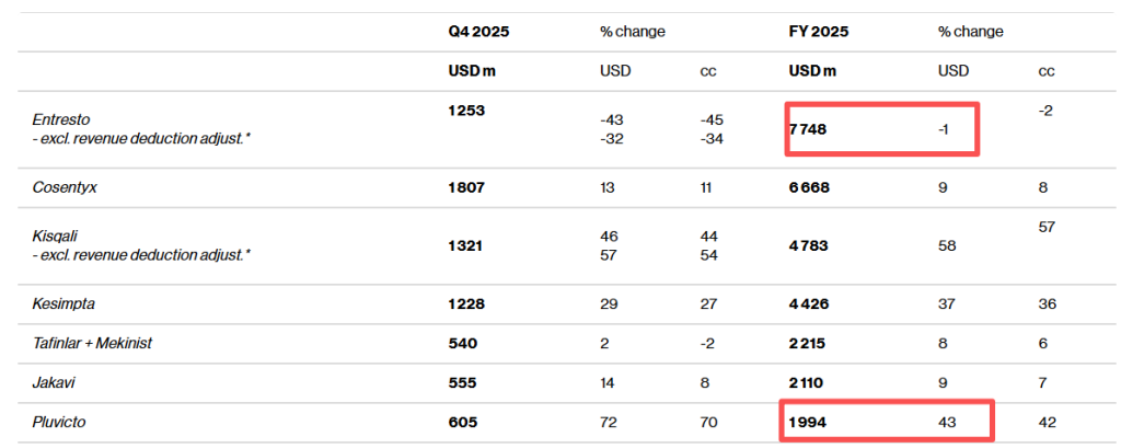 对于2026年,诺华预计净销售额将实现低个位数增长。诺华方面表示,展望2026年,即使面对诺华历史上最大规模的专利到期,公司仍预计实现业务增长,进一步证明诺华业务模式的韧性。预计在2026年将有7项关键数据读出,并持续推进中期指引。