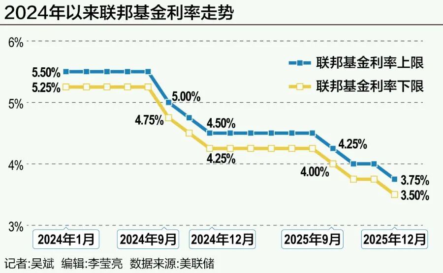 此外,据央视新闻报道,当地时间12月10日,美国联邦储备委员会结束为期两天的货币政策会议,宣布将联邦基金利率目标区间下调25个基点到3.50%至3.75%之间。这是美联储今年第三次降息,也是自2024年9月以来第六次降息。