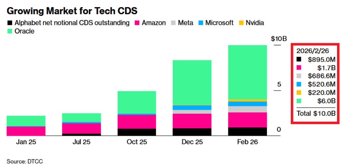针对大型科技公司的信用违约掉期(CDS)保护需求正在快速上升。