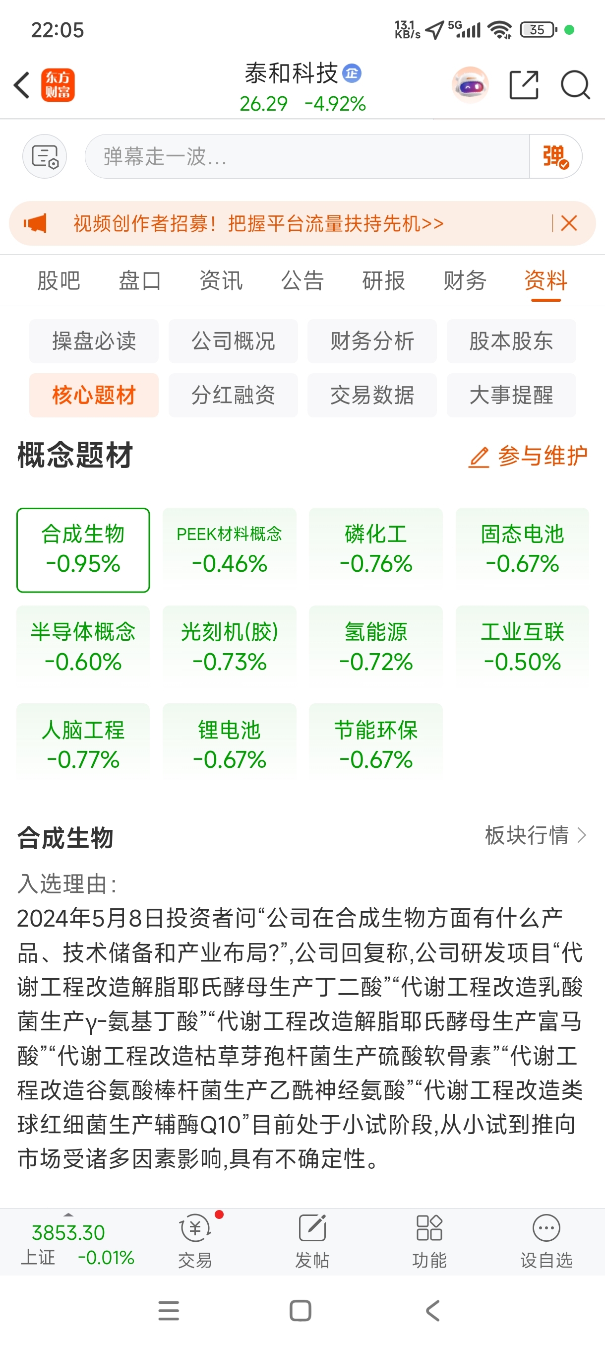 $PepGen Inc(NASDAQ|PEPG)$ 合成生物,泰和科技20厘米涨停!